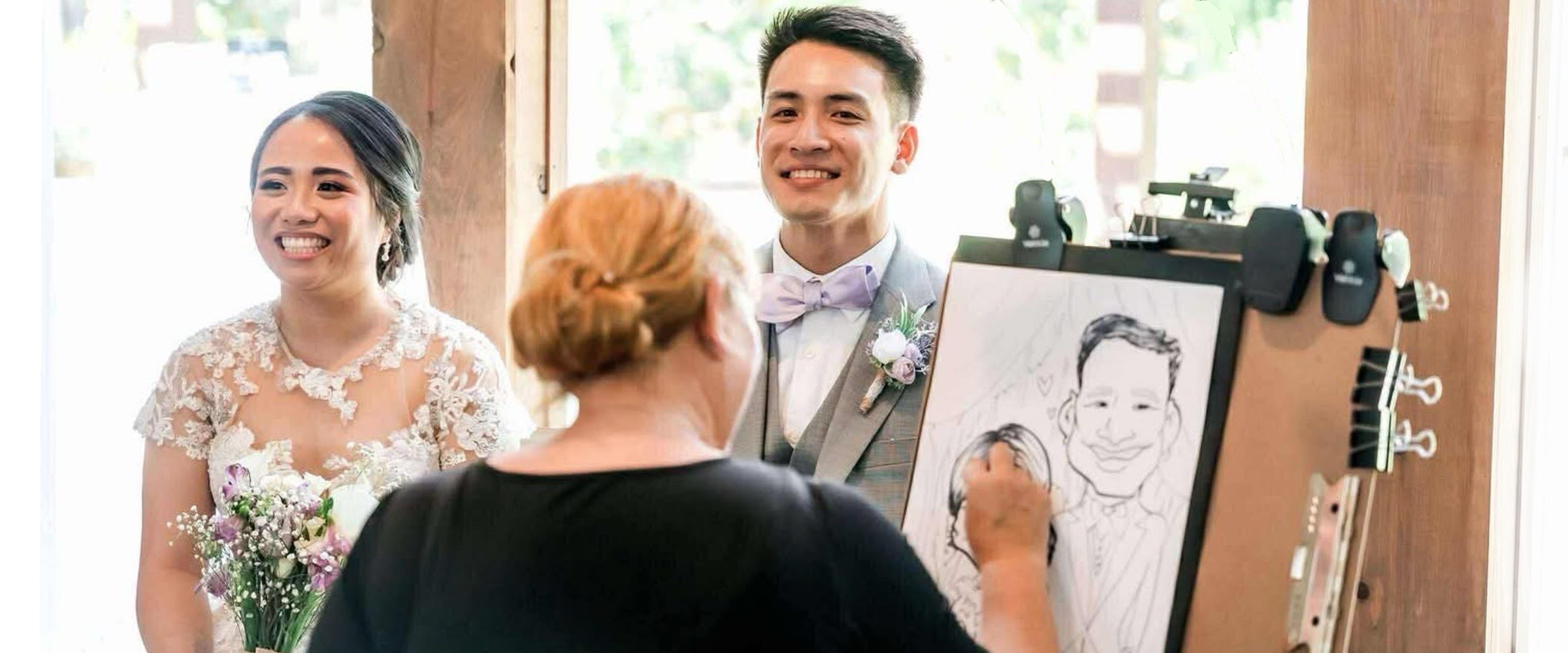 Hello, my name is Kathy Buskett. My wedding CARICATURES are an awesome way to break the ice at weddings, get everyone laughing, and then send your family and friends home with custom-drawn wedding favors!